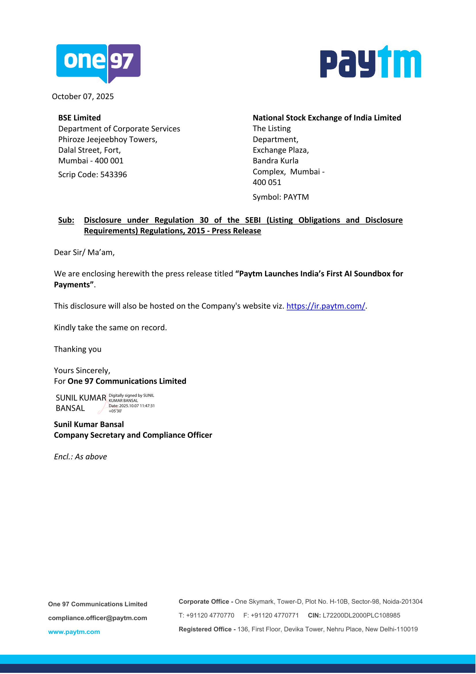 Paytm Launches AI Soundbox for Payments Paytm introduces India's first AI Soundbox, transforming it into an AI-powered business assistant for SMEs. The device offers real-time insights, supports multiple payment methods, and interacts in 11 local languages, aiming to boost operational efficiency and empower merchants nationwide. Original Filing: www.bseindia.com/stock... $PAYTM.NSE