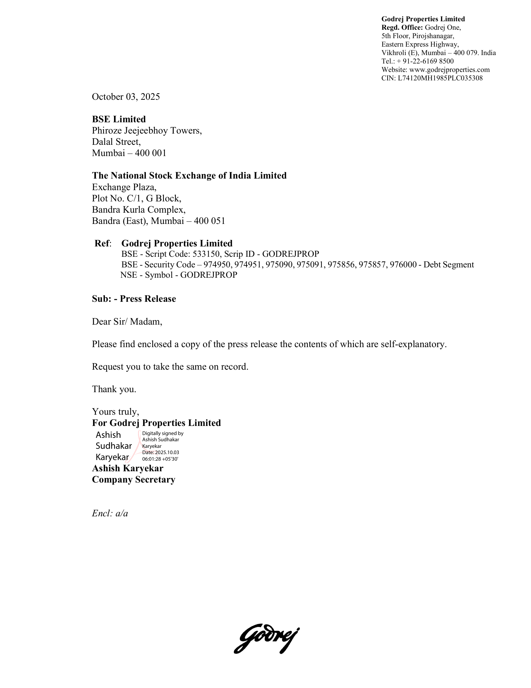 Godrej Properties Tops GRESB 2025 Godrej Properties achieves a perfect score of 100 in GRESB 2025, ranking #1 globally among residential developers. The company’s sustained ESG commitment and recognition highlight its leadership in sustainability. Original Filing: www.bseindia.com/stock... $GODREJPROP.NSE