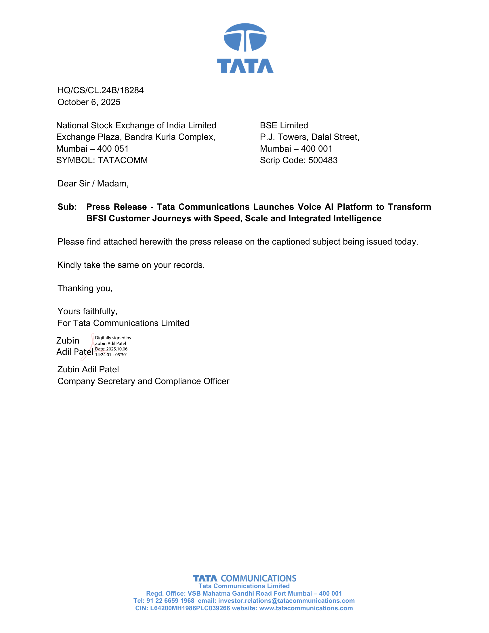 Tata Communications Launches Multilingual Voice AI Platform Tata Communications has introduced a new Voice AI platform powered by Agentic AI, targeting BFSI customer engagement. The platform supports over 40 languages, offers real-time speech-to-speech interactions, and includes features like call transcription, sentiment analysis, and rapid decision-making with under 500ms latency. It aims to enhance personalized customer experiences and operational efficiency across channels. Original Filing: www.bseindia.com/stock... $TATACOMM.NSE
