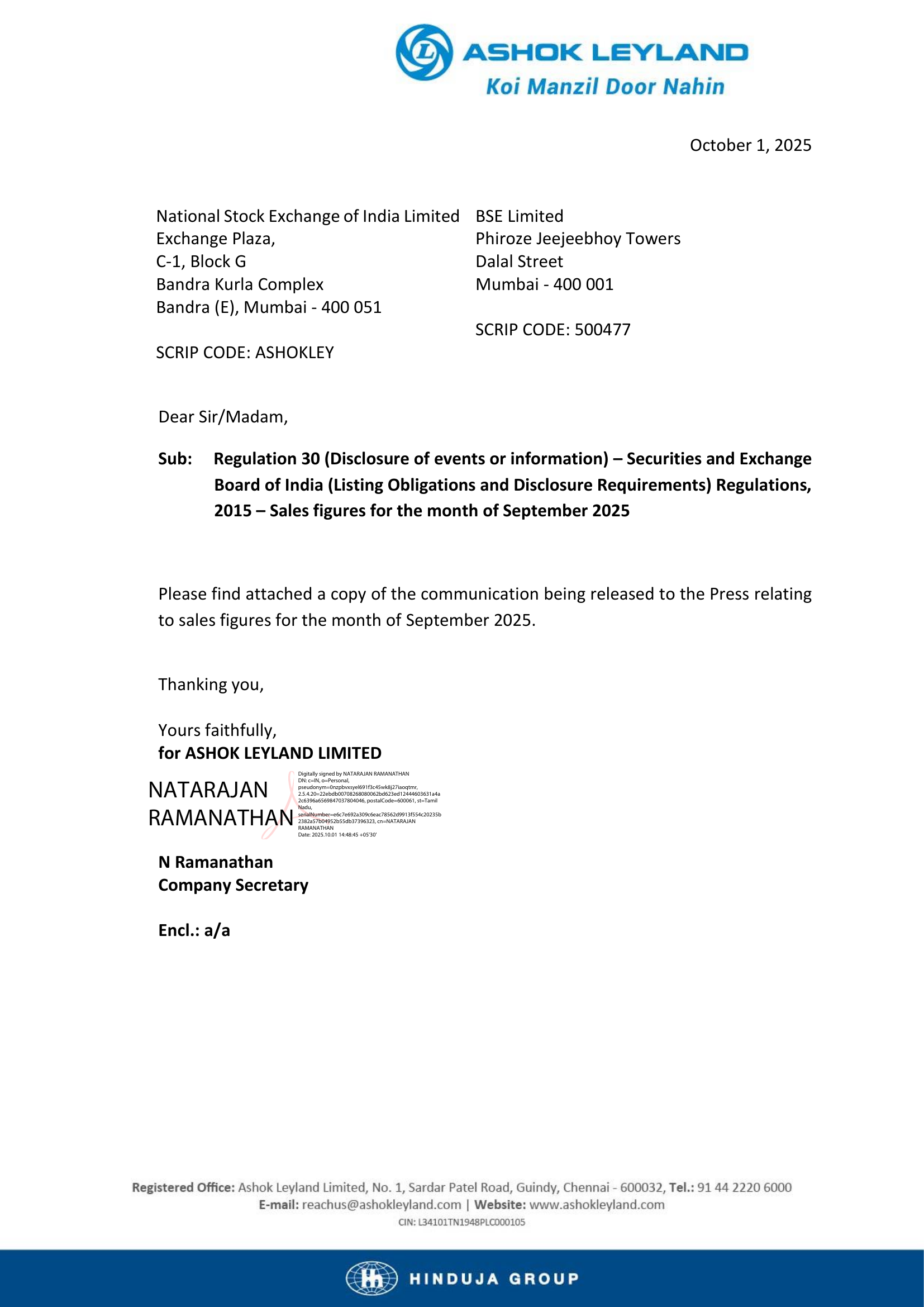 Ashok Leyland September 2025 Sales Update Ashok Leyland reports a 7% domestic sales increase in September 2025, with total vehicle sales up 9% including exports. Cumulative nine-month FY25 sales show a 4% growth. Positive sales momentum continues. Original Filing: www.bseindia.com/stock... $ASHOKLEY.NSE