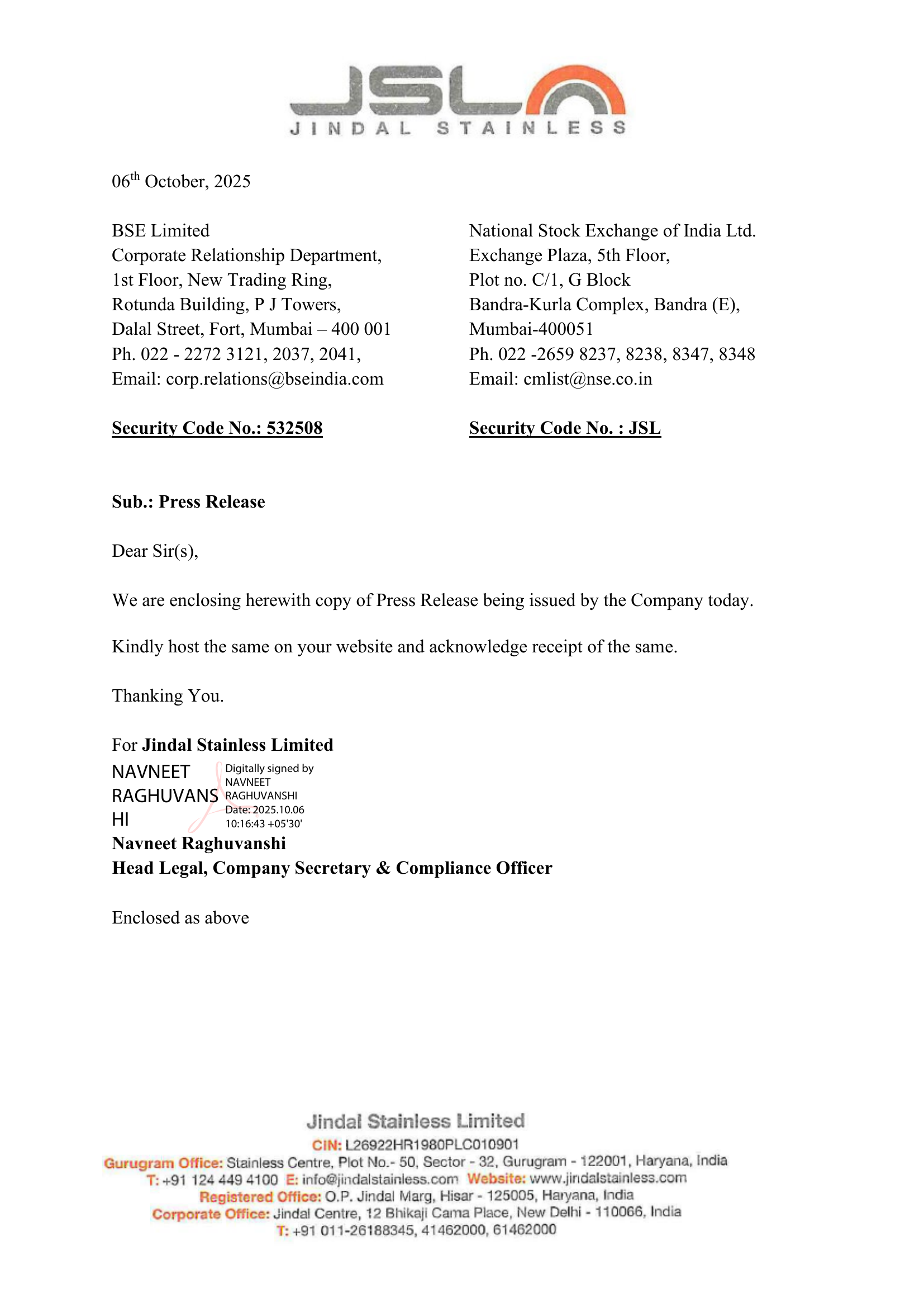 Jindal Stainless Launches Mumbai Fabrication Unit Jindal Stainless has inaugurated a new stainless steel fabrication facility in Mumbai with an initial investment of ₹125 crore, aiming for an annual capacity of 18,000 tonnes by FY26-27. The plant will focus on infrastructure components like bridge girders, create over 250 jobs, and incorporate solar power in future phases to support ESG objectives. This expansion enhances Jindal Stainless's infrastructure segment and sustainability initiatives. Original Filing: www.bseindia.com/stock... $JSL.NSE